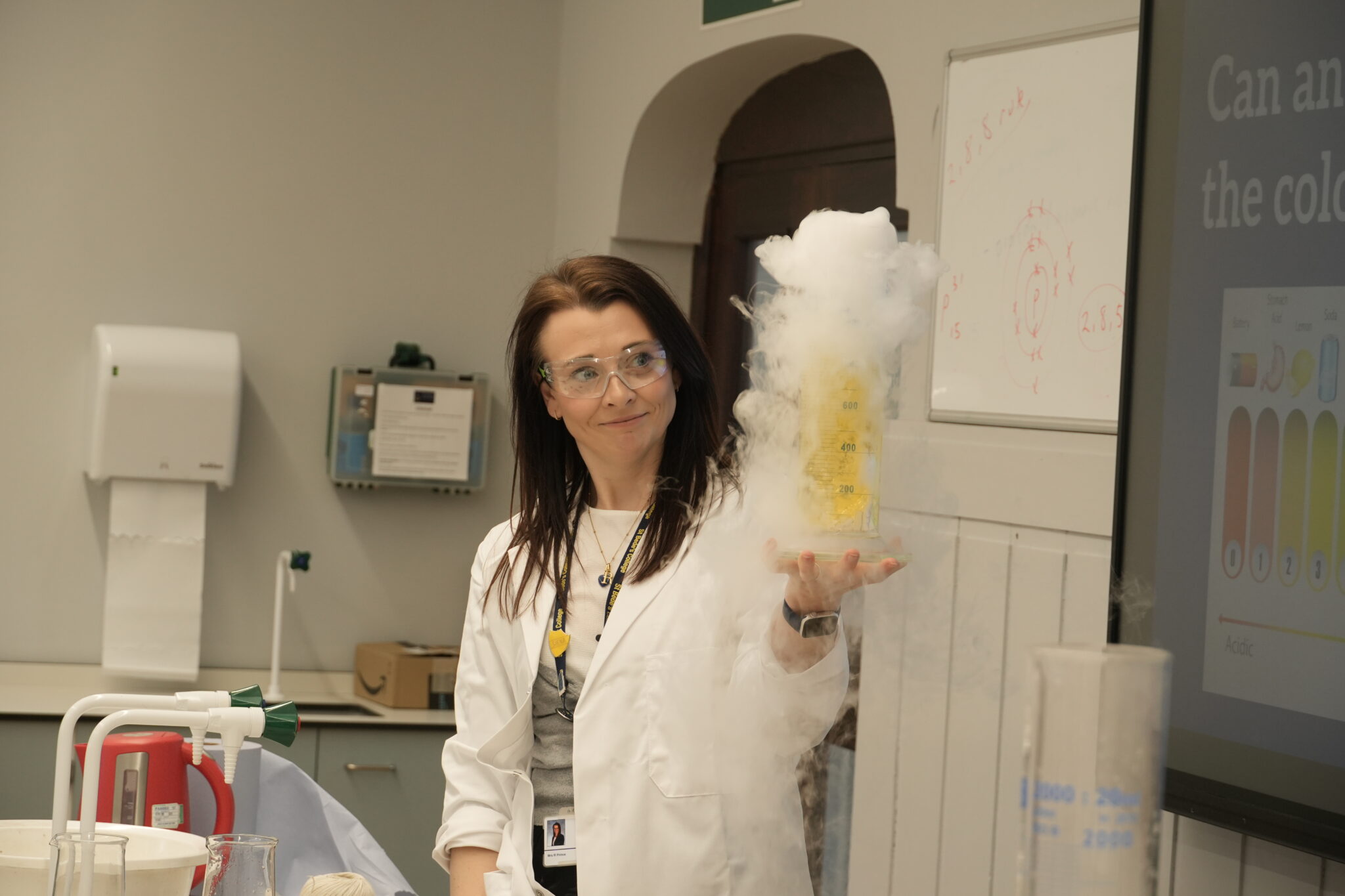 In the Prep school, our younger pupils fully embraced their inquisitive side too. The children were challenged to come up with their very own scientific questions, and the sheer variety of them has been wonderful to see! We will be displaying these brilliant thoughts on our brand new WONDERWALL, and the children will receive a special visit from a college scientist to answer their specific questions in person! To get the cogs turning ahead of this, all Prep classes from Nursery right up to Prep 6 were treated to some incredibly exciting experiments with dry ice. Classrooms were temporarily transformed into misty laboratories. Watching the dry ice bubble and transform into billowing clouds sparked real awe and led to some fantastic Science buzz amongst the pupils.