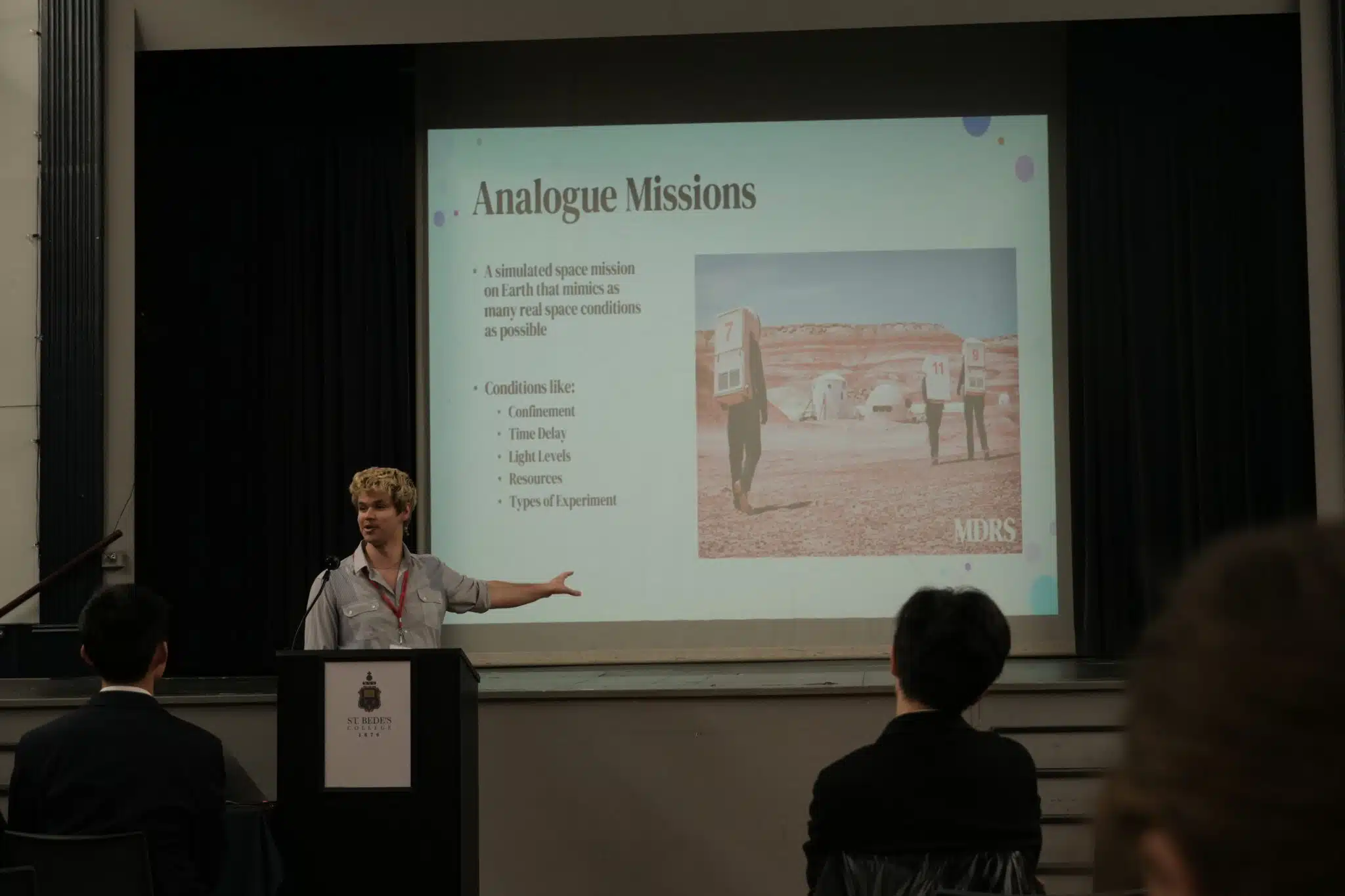 The excitement continued with guest speakers. We were incredibly lucky to welcome Nathan Pili, currently aspiring to the Astronaut programme. Nathan captivated the room by sharing his recent experience of spending a several weeks underground in a special training bunker. He spoke openly about the psychological challenges of isolation, the strange reality of living entirely below ground and what it takes to train for space exploration.