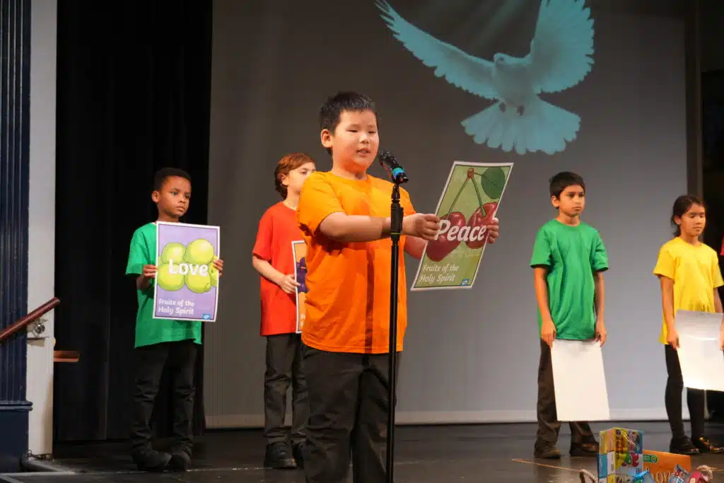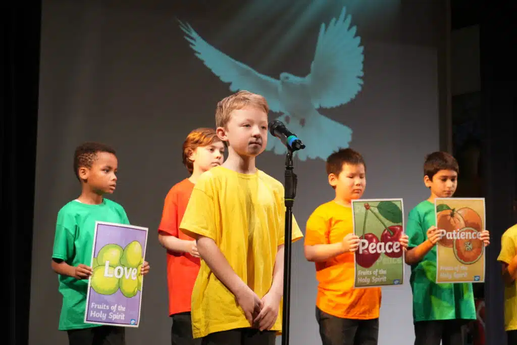 To conclude, the children reflected on the Fruits of the Holy Spirit—love, joy, peace, patience, kindness, goodness, faithfulness, gentleness, and self-control—through song and prayer. These meaningful moments reminded everyone that these spiritual fruits within us help us grow together in kindness and gratitude.