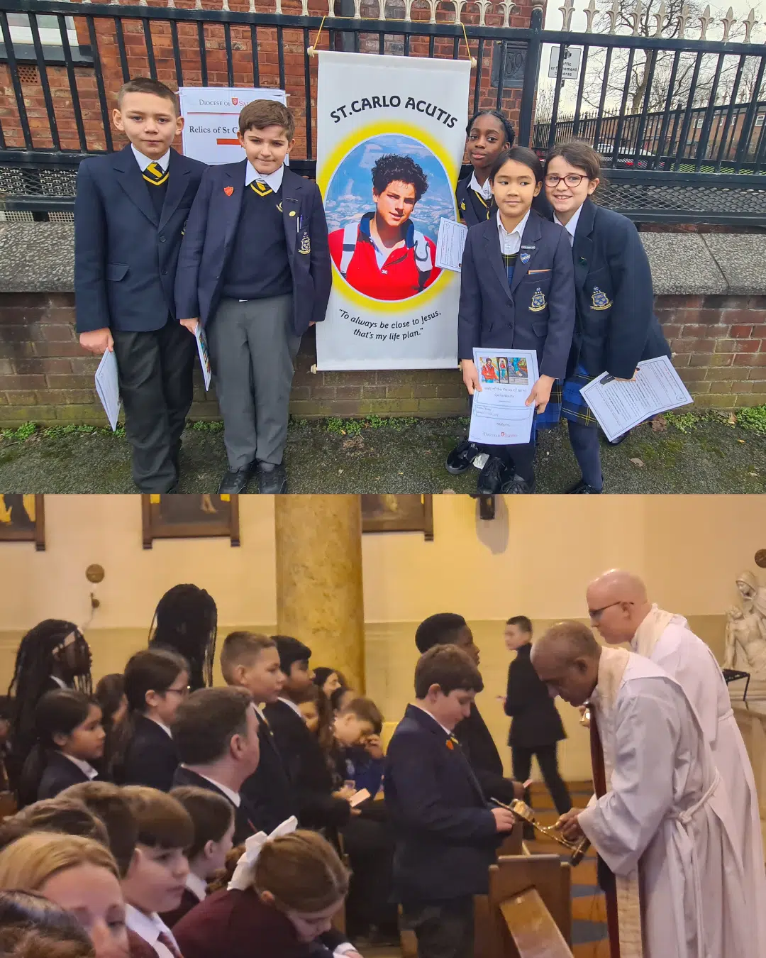 Monsignor Anthony spoke about how ordinary Carlo was – he was a computer genius who enjoyed video games and playing football. However, he knew his priority was service to Our Lady. He used the internet to research and share the miracles of the Eucharist online. All the children present were reminded of the need to perform small, often hidden acts of charity in service to others.