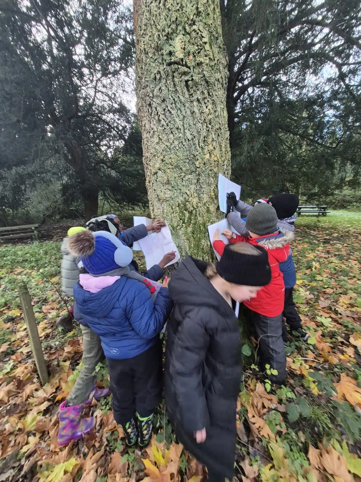 After birdwatching, the pupils explored the different tree species in the park. They took bark rubbings to record the textures and patterns in their sketchbooks, helping them understand how trees can be identified.