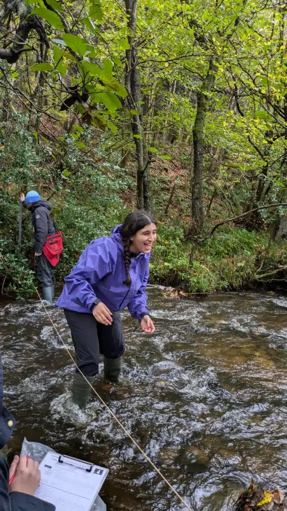 The following day, after some relaxation time in the Centre, the weather was similar but with thicker clouds and light rain. Wrapping up with extra layers of appropriate clothing and bringing our Wellington boots and waterproofs, we headed off to different tributary sites of the River Derwent in the North York Moors to complete Physical Geography fieldwork. This involved wading into the river channels to measure width, depth and dissolved load. Once again, the students worked efficiently in teams, collecting data accurately and without any significant disruption to the beautiful natural landscape around them. There were a few funny occurrences of water getting into Wellington boots (Joel H, Clinton N, Dominic P and Aalikhya V can provide more details) and the occasional unwanted attention from ‘giant’ spiders and other daring creatures that have the sheer audacity to live in the wild, but the students coped well and came away with good sets of results and good memories.